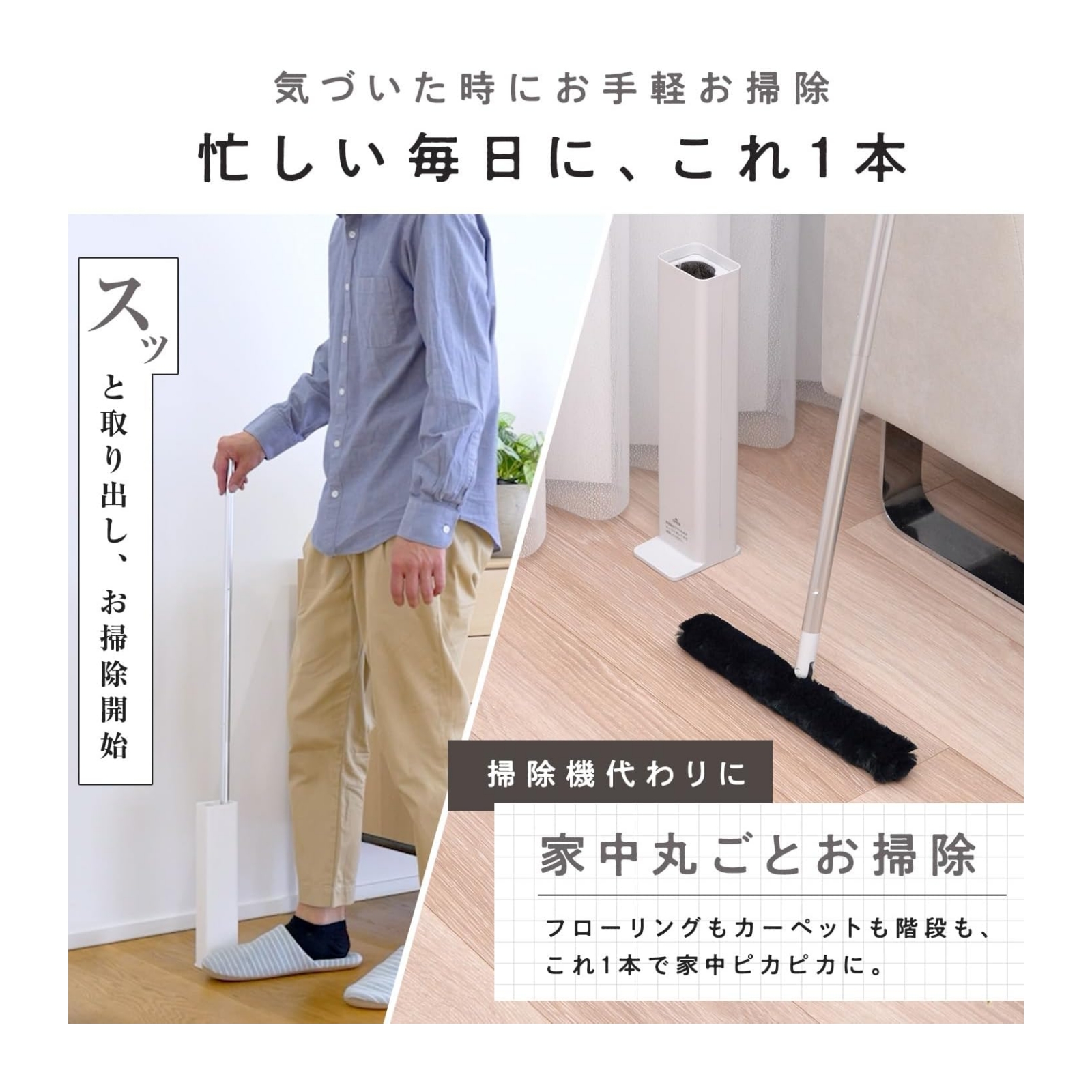 シリーズ化したトレループ伸縮タイプ、フローリング用、階段用など幅広く展開。日々の掃除をもっとラクに。